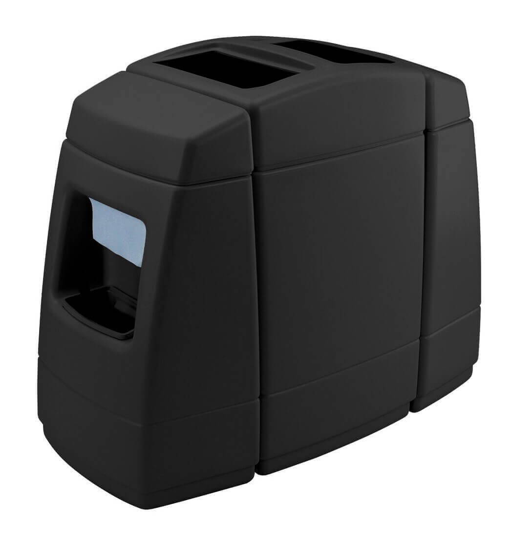 Our 55-gallon double-sided Island service center polyethylene plastic receptacle with 2-gallon buckets and towel dispensers is a necessary addition to gas stations, rest areas, and car washes. Molded out of 1/8" thick long-lasting polyethylene that won't rust, dent, or chip, this servicing center will give many years of service. Includes two 2-gallon water buckets, towel dispensers, and squeegees locate at the ends of the receptacle for convenient access from either side. The towel dispenser accommodates the standard 10" x 10" of 1 or 2 ply folded paper towels. Comes with two 27.5-gallon liners resulting in a lighter trash exchange. Remove the lid to take out the trash or stock the paper towels. The bucket can be lifted out of place to empty and refresh the water or cleaning solution. Featuring two 12" x 10" opening in the top for easy disposal and the patented Grab Bag system, which secures the bags to the receptacle. Made in the USA and is supported by a 1-year commercial warranty.