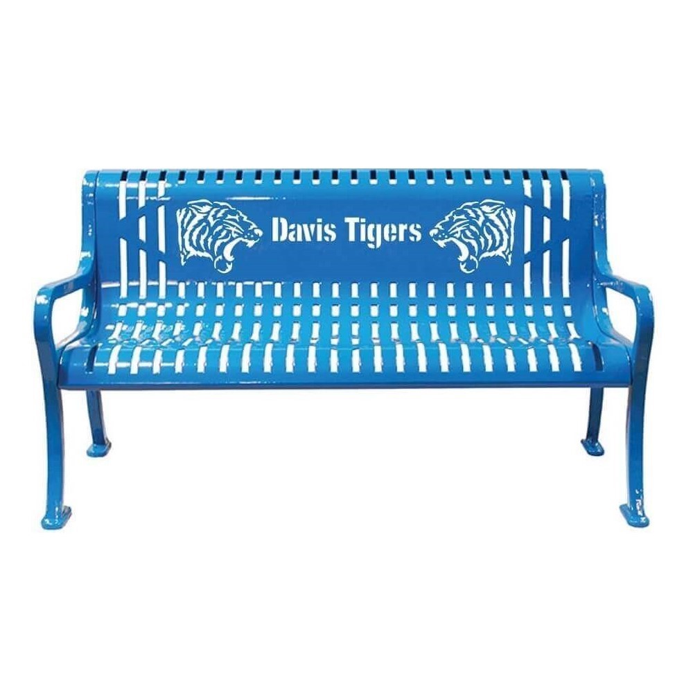 This Personalized Diamond Style Memorial Thermoplastic Bench is an ideal and unique seating solution for parks, schools, and businesses. Get your brand, logo or name manufactured into the back for a personalized bench that will spread your name around the community. Made with thermoplastic coated 11 gauge steel slats and 1/2" cast iron legs these heavy duty benches won't chip, rust or fade keeping your custom logo looking as new as the day you got it. Pre-drilled mounting holes allow for an easy to use mounting solution. Choose from a 4 ft. or 5 ft. bench length and a variety of separate color options to best fit your logo or location. This comes with a 5-year commercial warranty and is made in the USA.
