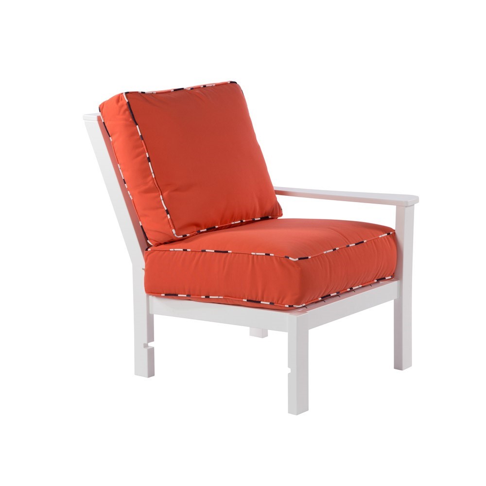 This lounge chair with an arm on the left side is one of many pieces that make up the hospitable Sanibel Modular Deep Cushion Seating Collection. Heavy-duty HDPE marine grade polymer makes up the frame and the back structure, while the seat is supported with vinyl strap. The cushions are made to resist mildew, stains, and fading, making it a perfect for both indoor and outdoor use. Mix and match the other components to utilize the space in your lobby or patio area. Sectional connectors are included with all sectional pieces. Furnish the conversational areas of your hotel, resort, and country club with this comfortable Sanibel Sectional Collection. Call us today for a great quantity discount to dress up your entire establishment.